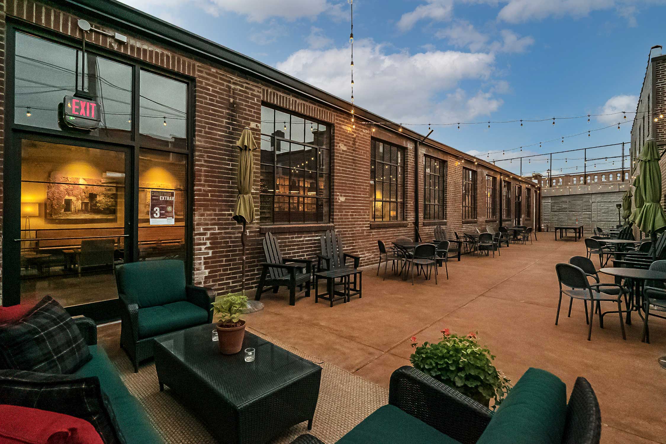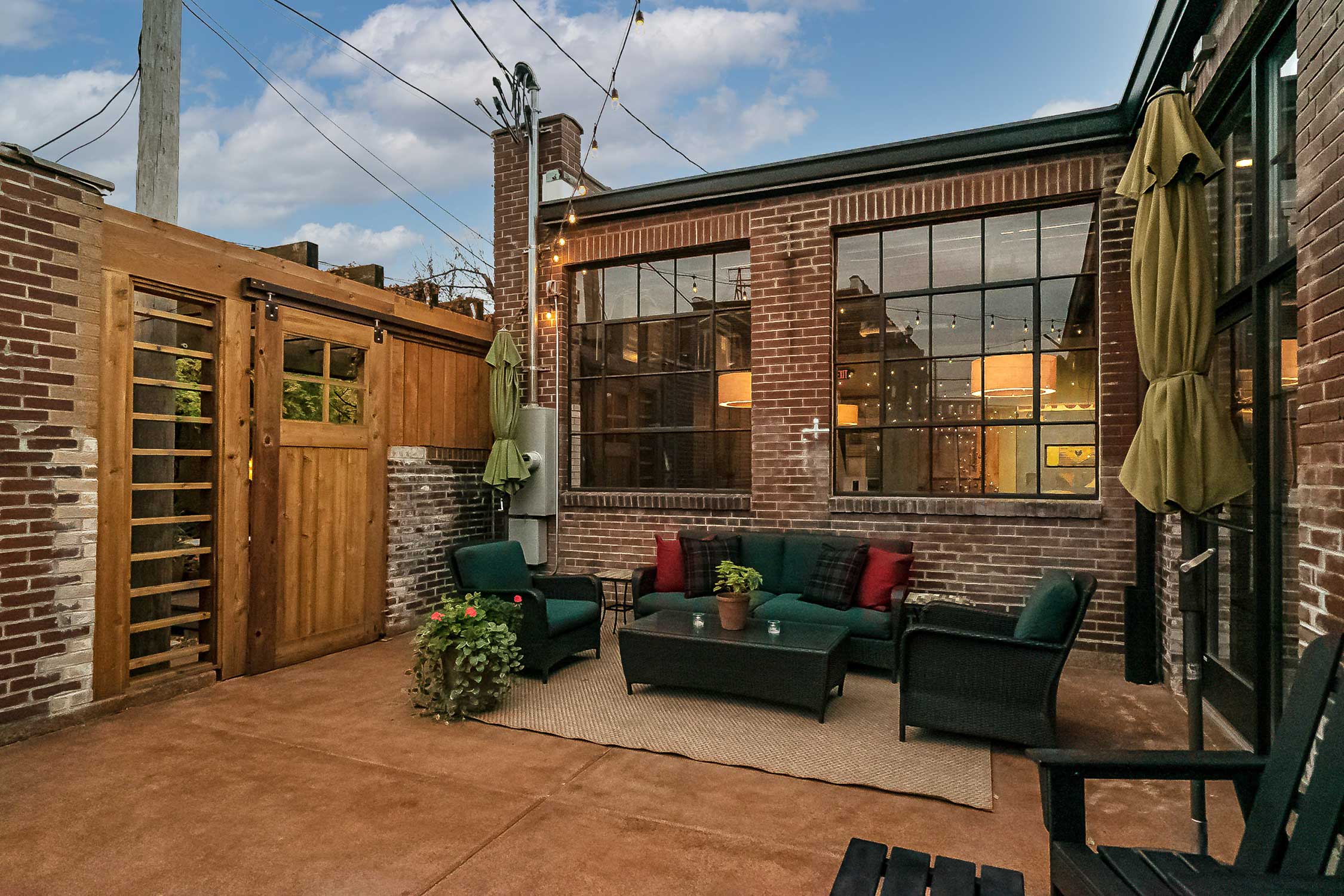 - Overhead string lights on terrace